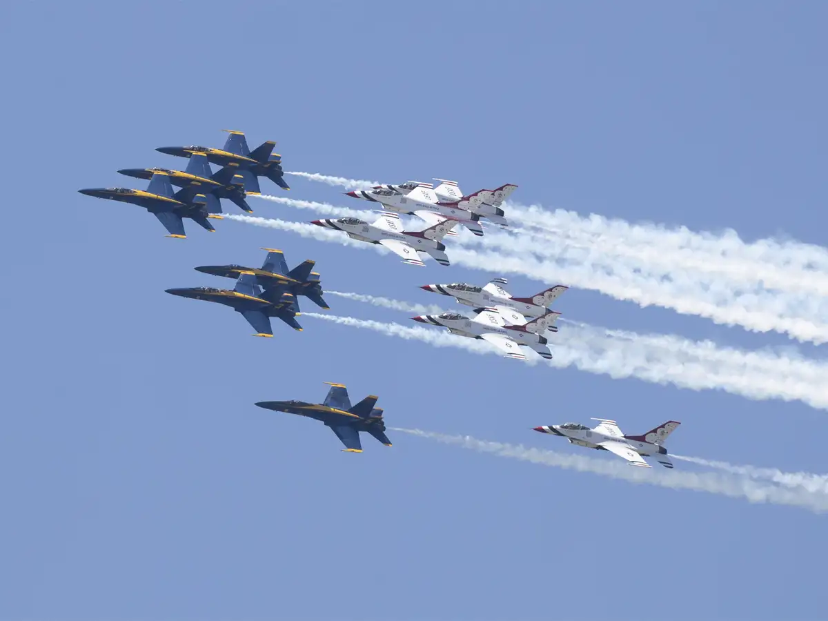 Residents of the nation's capital Washington, as well as Baltimore and Atlanta were treated to sights of the Navy's Blue Angels and the Air Force's Thunderbirds arcing across the sky. Crowds turned out on the National Mall to see the jets fly in formation past sites such as the US Capitol and the Washington Monument.